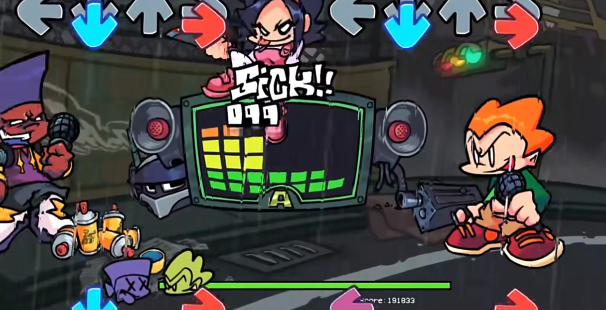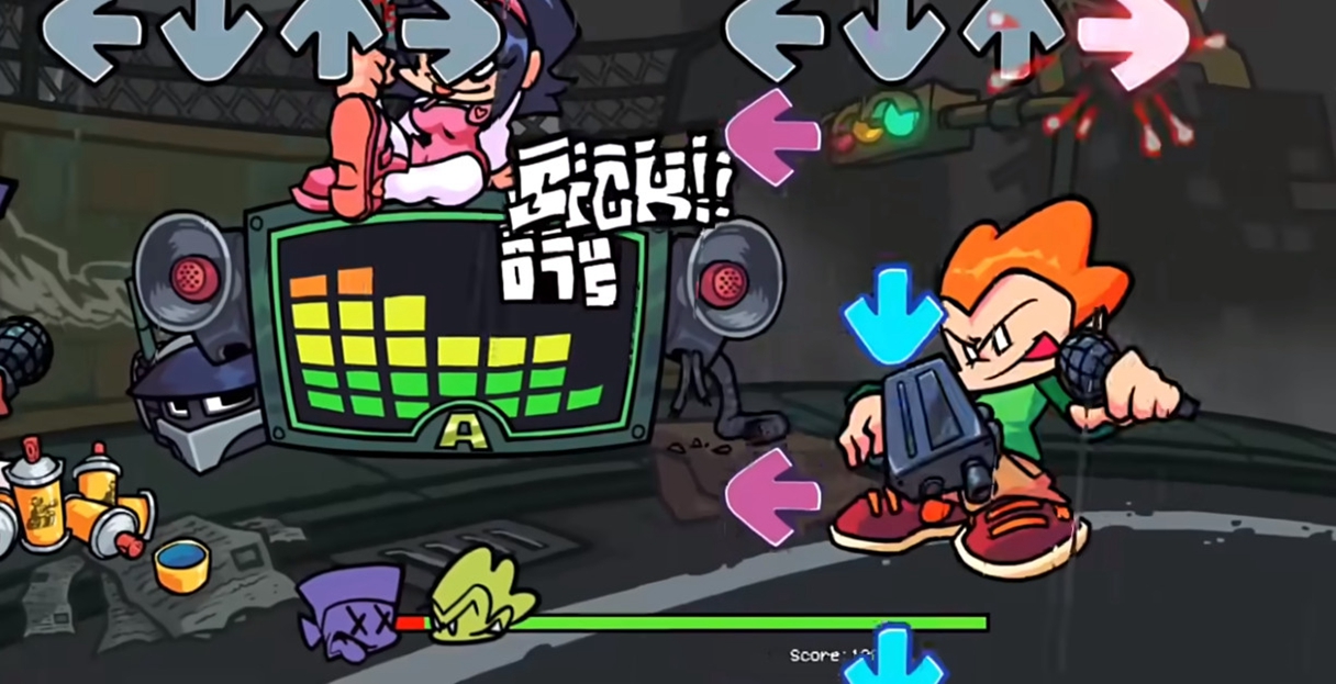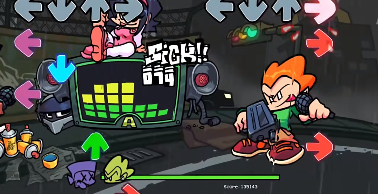 《fnf原版》是音乐节奏游戏Friday Night Funkin的官方重大更新,延续了系列标志性的下落式箭头玩法与复古卡通风格。本次更新以角色Pico为核心展开剧情,玩家将跟随他在雨夜街头与Nene、飞机头Darnell展开音乐对决,场景细节丰富——如红绿灯动态变化、雨势渐强的环境渲染,强化了叙事沉浸感147。游戏新增三首原创曲目,融合电子与摇滚元素,搭配高度同步的角色动画和霓虹光影特效,为玩家提供兼具挑战性与视听张力的节奏体验。