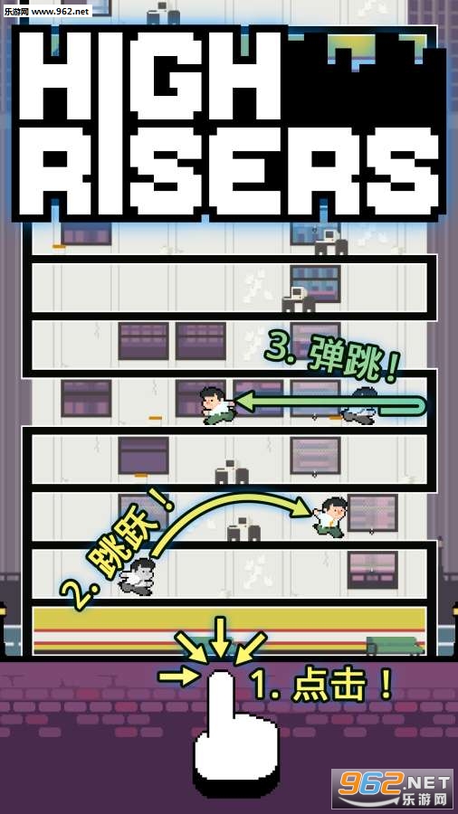 《高楼跳跃HighRisers》是一款休闲益智类游戏。游戏的玩法很简单,点击屏幕控制角色,让他在正确的时机跳跃,不要让角色从高楼上掉下去。不断解锁新的人物与场景,很值得一玩哦!