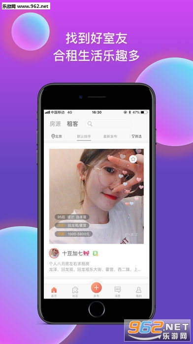 合租趣提供房主和租客的年龄范围、星座、职业、兴趣爱好、房屋地点与期望租房地点等,让你更容易寻找兴趣相投的合租室友!在线交流,选择室友,让你更舒心
