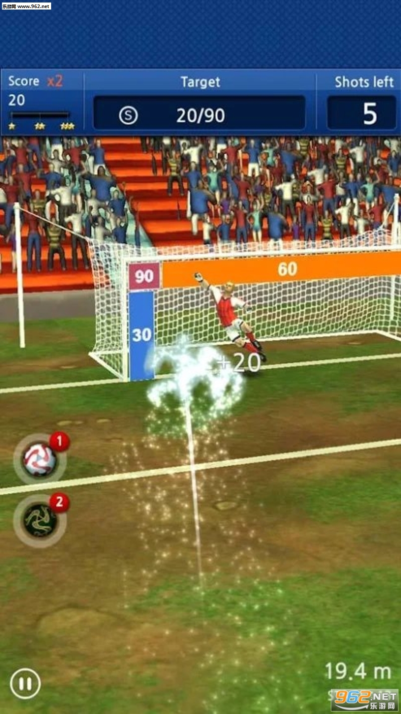 用手指拖动球,调整射门的强度和旋转。