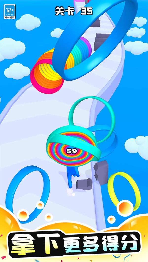 2、弹簧助力飞跃:积累足够圆圈可转化为弹簧,利用弹簧让角色飞得更远,获取丰厚奖励!