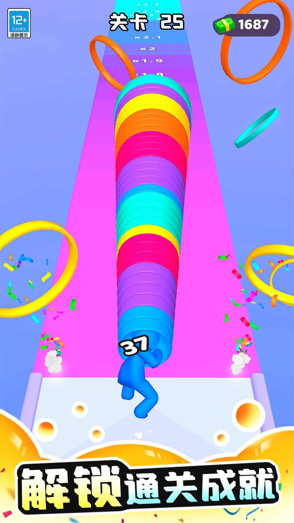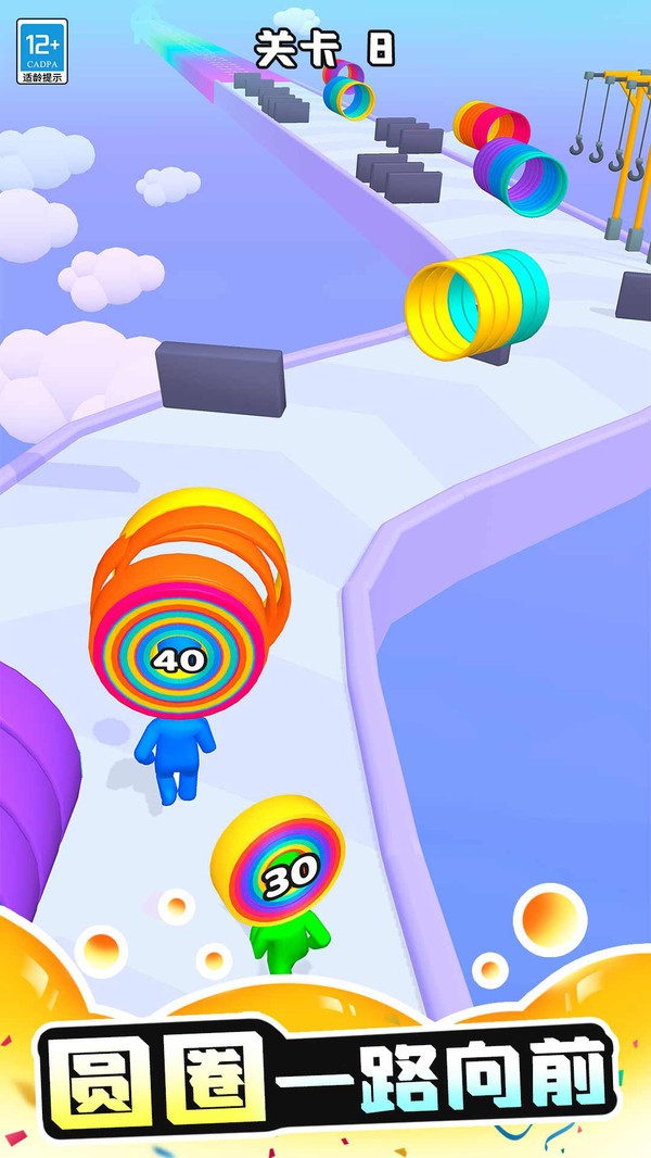 1、扮演圆圈人跑酷:玩家操控圆圈人在 3D 跑道上不断奔跑,展开冒险之旅!