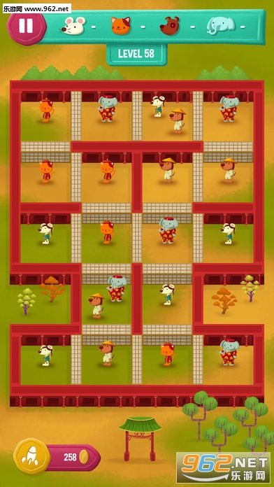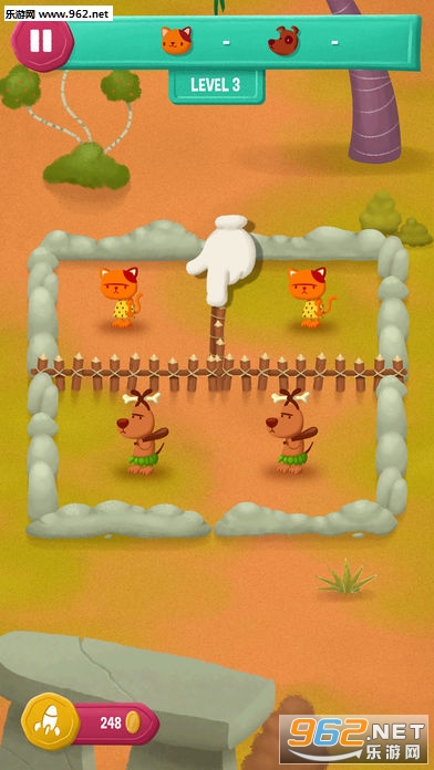 在这个棘手的益智游戏中,狗和猫,小鼠全部由栅栏隔开。由你来删除这些栅栏,但是要注意:如果你让狗猫数量超过或猫的数量超过小鼠,嗯。。你会看到结局的。