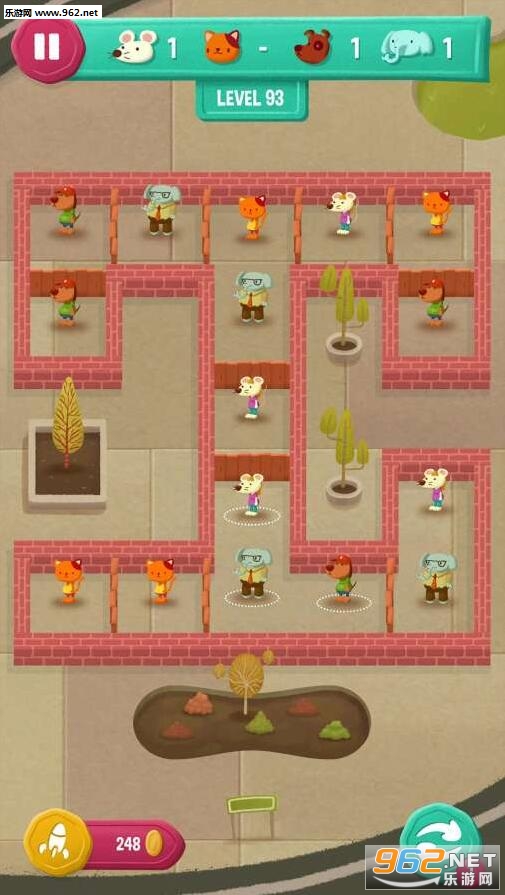 《动物谜题Animaze安卓版》是一款休闲益智类游戏,玩家需要划屏将动物们隔开,你需要保障每个圈子内的动物种类以及数量满足一定的规律,不然弱小的一方就会被吃掉哦~你需要平衡各种动物的数量,Animaze游戏还将结合了拼图玩法,在100多个关卡中展开益智挑战并解锁更多动物。把敌对的动物团聚在一起!在这个可爱的益智游戏中,狗、猫和老鼠都被篱笆隔开了。除掉这些篱笆是由你决定的,但是要小心:如果你让狗超过猫或猫的数量超过老鼠,那么.…你会看到的。