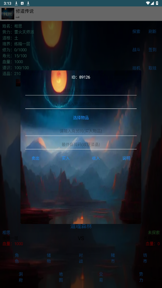 《修道传说》是一款独特的文字修仙游戏。玩家将踏足一个充满神秘与传奇的道气大陆。这片大陆被浓郁的道气所环绕,孕育着传说中的道仙、上古神魔,甚至异界的生物。玩家将扮演一名修道者,从凡尘俗世中崛起,历经千辛万苦,只为追寻那飘渺的成仙之路。游戏将带你领略古老道法的魅力,体验与神魔共舞的惊险刺激,书写属于你的修道传说。