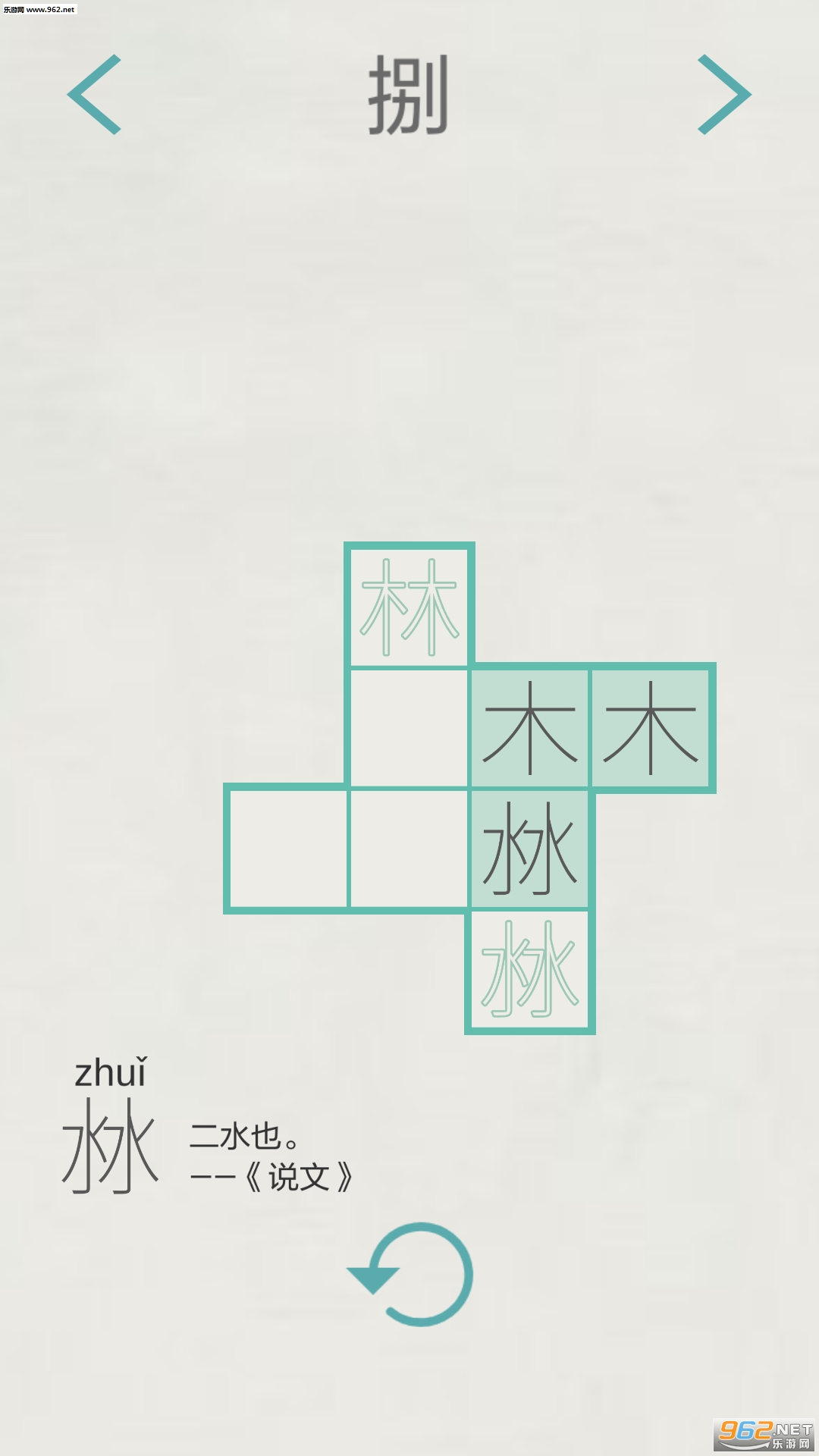 在游戏中,玩家需要通过组合“木”、“水”、“火”、“土”四个字来组合成复杂的汉字进行通过。