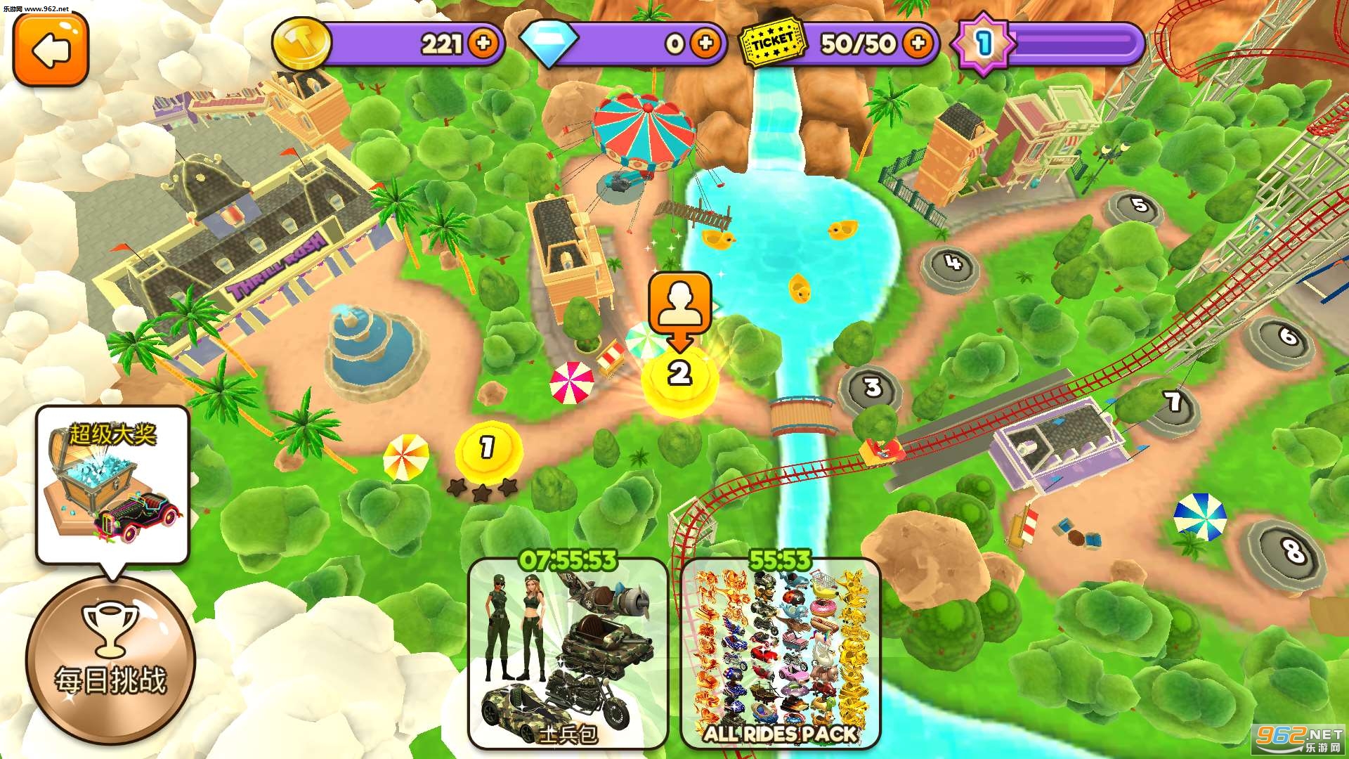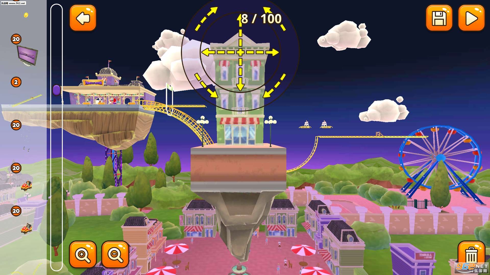 3、以游乐园为背景,包含各种闯关模式,上百种建筑道具,打造一个不一样的过山车玩法。