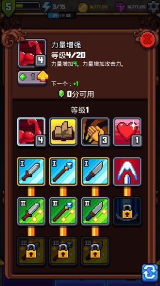 3、打怪物获得经验值和升级你的角色!每一个层面上提高你的HP、MP,给你3个状态点和1个技能点。状态点可以用来增加状态菜单中的属性,技能点可以用来学习技能菜单中的技能;
