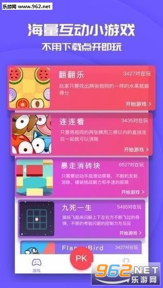 2、真人对战:海量互动小游戏,聊天对战两不误;