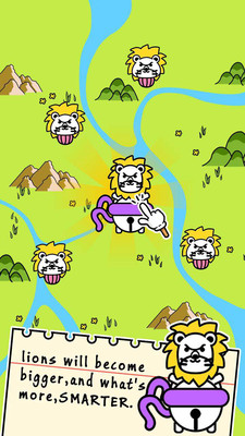 是一款玩法十分简单的养成融合手游,玩家通过持续地点击、融合、进化,创造出新品种狮子,培养最强大的狮王,感兴趣的朋友,赶快来下载体验吧!