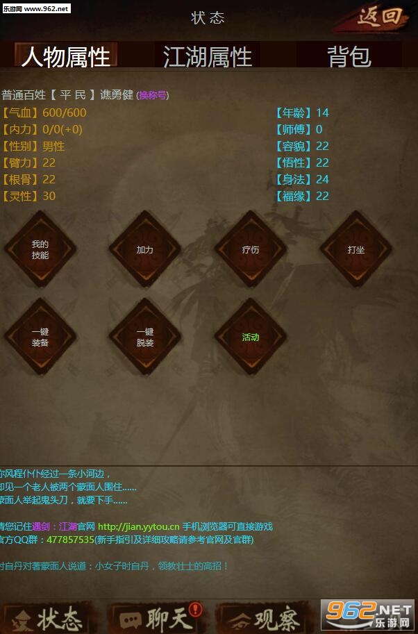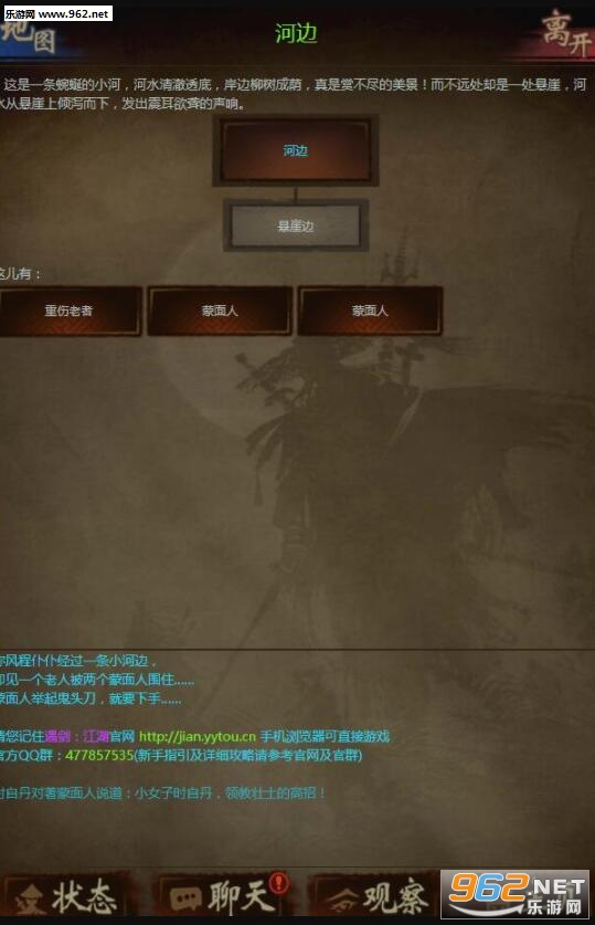 《遇剑:江湖》是一款开放类型的文字武侠冒险游戏。游戏的地图非常庞大,玩家能自由的进行探索玩法,多种武学技能任你搭配。