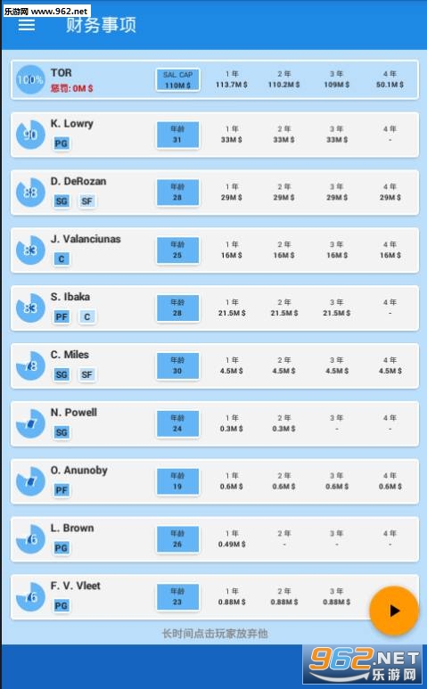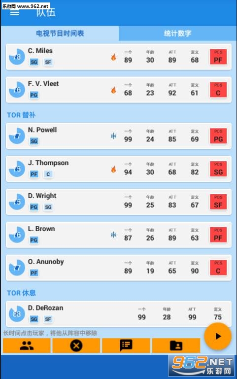 你可以打造你的阵容,球员转让,签署自由球员,并看到所有的球员和球队的统计数据。