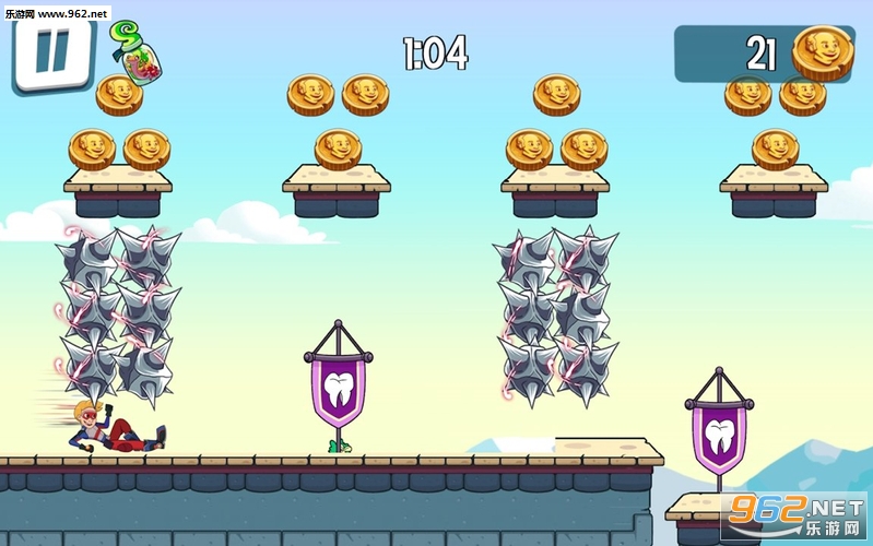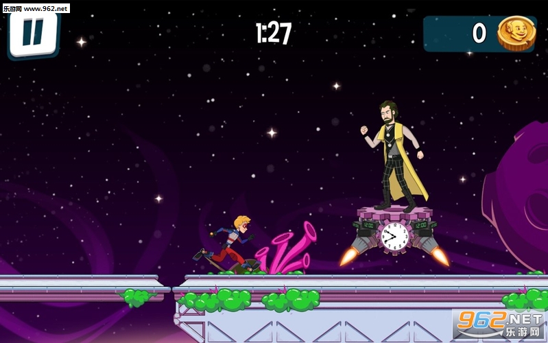 时间怪客与他的邪恶盟友越狱了。滑动,跳跃,下潜,击打巨型爆米花怪兽时可收集疯狂硬币,进而阻止罪犯!
