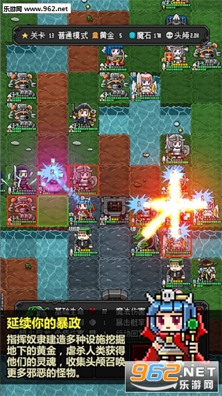 玩家将扮演恶魔守护者,通过训练恶魔军队和建设防御设施,打败所有的勇者!