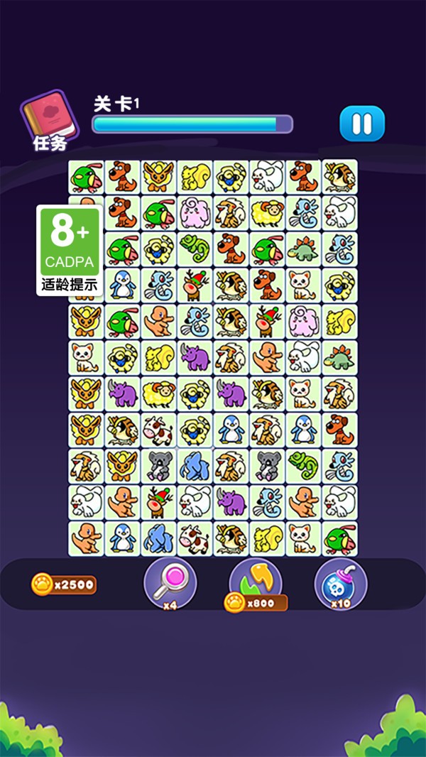 是一款休闲益智类游戏,你需要通过消除相同的宠物图案来获得高分并完成关卡挑战。游戏提供了丰富多样的宠物图案,可爱的猫咪、可笑的小狗、憨态可掬的宝可梦等,你需要观察和思考,找出相邻的相同宠物图案,并通过连接它们来消除。无论是在上班途中或者休息时间,都可以随时打开游戏,享受消除宠物的乐趣。