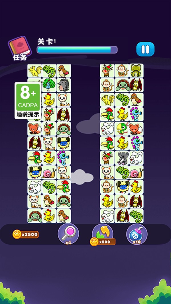 1、宠物连连消融入了各种各样的动物角色,是一种全新的闯关体验。