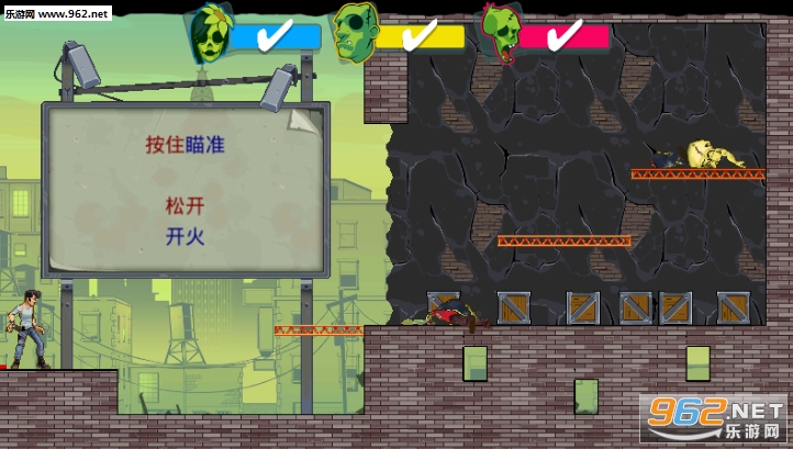 愚蠢僵尸3(SZ3)是一款僵尸类射击游戏,是个之前的系列的续作,玩法依旧是射击后让子弹反弹并击中尽可能多的僵尸,关卡数量也更多,玩起来也挺费心思考虑弹道。 愚蠢僵尸们再度崛起了,而我们的英雄正在解决这些麻烦!以刁钻的角度进行射击,并得到极多的连击分数!用巨大的爆炸和大规模破坏把僵尸们统统打飞。