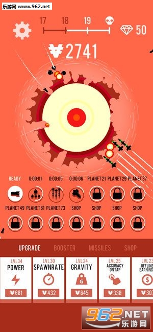 3、升级装备将行星摧毁后,你可以升级你的飞船和导弹向着其他星系进行攻击,还可以解锁全新的关卡。