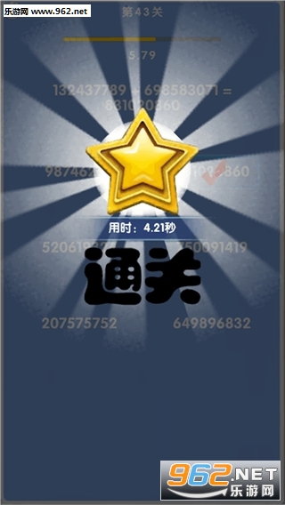 一款算术小游戏。游戏也没什么玩法就是在规定的时间内得出答案。游戏关卡很多,并且自带的记录玩家通关时间,所以不断的追求极限是这个游戏的魅力所在。游戏难度说难也不难,挺考验各位的速算的。