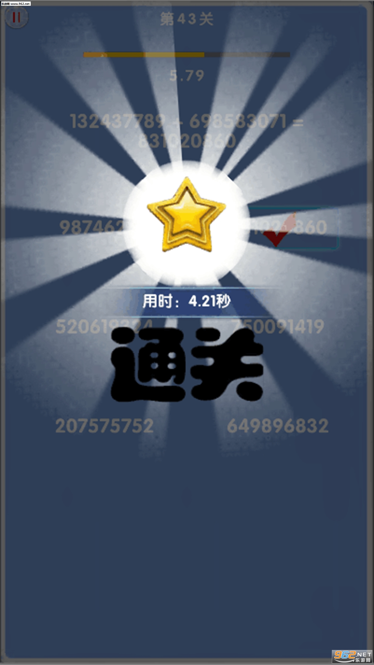 玩家通过关卡给出的算式,在短时间内得出答案,并在下方的选项中找出答案即可通关。