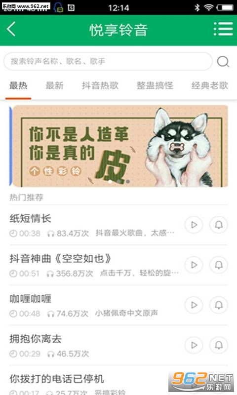 3.提供搜索热词榜,看看大家都在搜什么铃声吧。