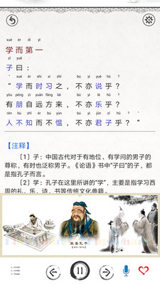 以论语为核心的国学学习软件,用户能够通过软件学习论语,有详细的注解以及有趣的插图,画面纯净,没有任何广告哦!