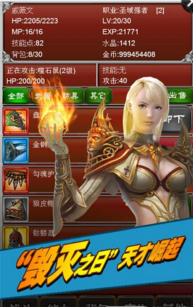 二/强化与高级:只能强化红色装备,强化需要两件祭品,高级不需要祭品(建议小伙伴不要用高级,高级太贵很不划算