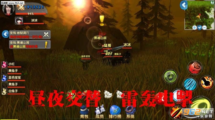 游戏中主角的小家最高战力5211314(包括自己和伴侣,5只兔子,2个坐骑的战力)。游戏中有6种技能(包括近攻和远攻,目标型和范围型,防守与进攻,回血等),可以找技能师提高技能等级,提高技能的属性。游戏中可以采集各种物品,然后找打造师对其装备进行升级打造强化。休闲时还可以采胡萝卜药品等,来喂养自己的5只兔子,让它们长大提高战力,兔子可以通过设置属性,让它们贴身保护自己还是像猎狗一样主动攻击。游戏中有8个不同等级的地穴,每天都可以去刷装备,一个18层地狱洞穴等着大家通关。在场景中还有31对不正常的异性关系,也等着大家去发现然后吆喝一声...