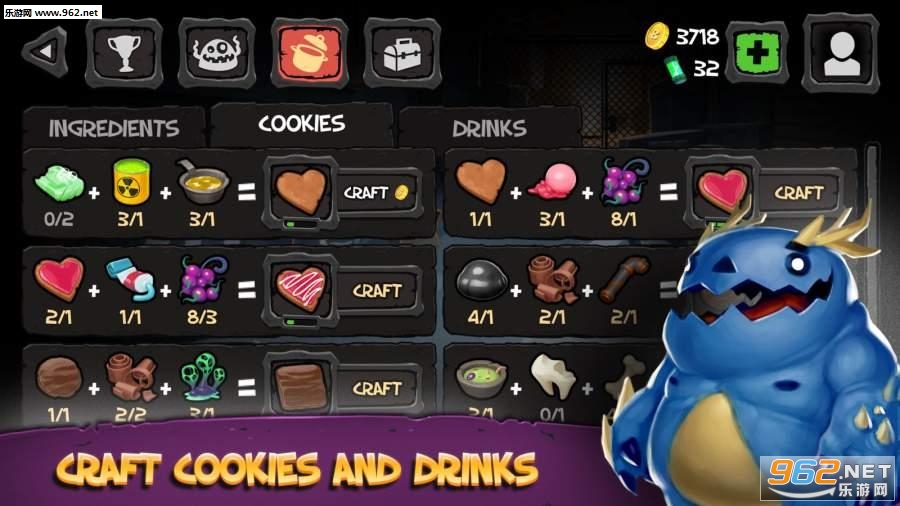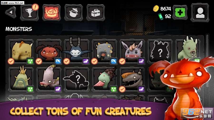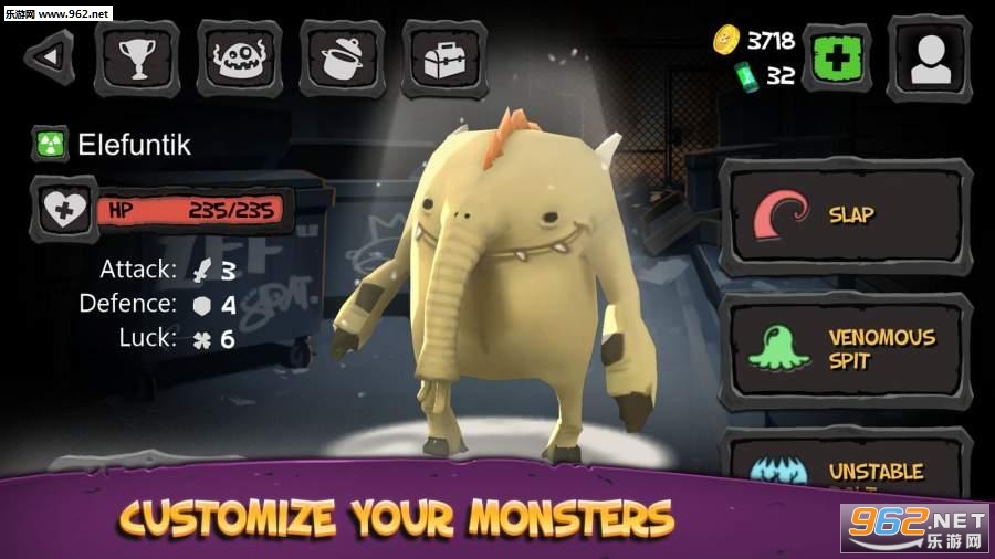 一开始我们只能选择3只怪物中的一只来展开游戏,它们除了长相有区别之外,其角色属性也有不同,这主要体现在攻击力、防御力、幸运值三大属性上,可以说各有优劣,当然了角色技能也会有区别。其实角色属性在后期的养成过程中可以有针对性地进行发展,玩家可以将属性点配置到三个属性中的一个。