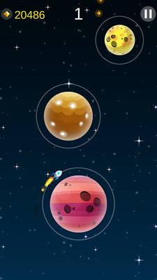 这款游戏玩法和《星途WeGoing》一样。玩家需要考虑惯性的基础下,找准合适的时机,才能让火箭在不同星球的轨道上跳跃!