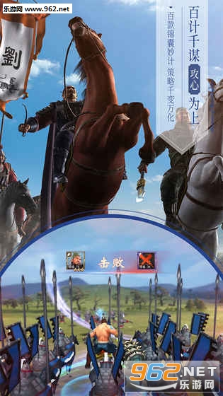 身临其境的3D战场,草地,雪地,沙漠,城镇,都城,丰富的3D场景,仿佛让你置身古代战场,体验超强代入感。玩家的每场战役,都将在敌方城门下展开。通过还原历史名著动画的战场氛围,古城,乃至士兵盔甲,让玩家身临其境体验三国时期那攻城拔寨,动人心魄的战斗。