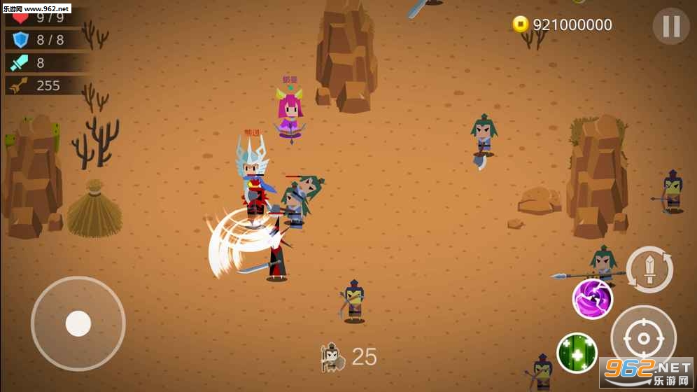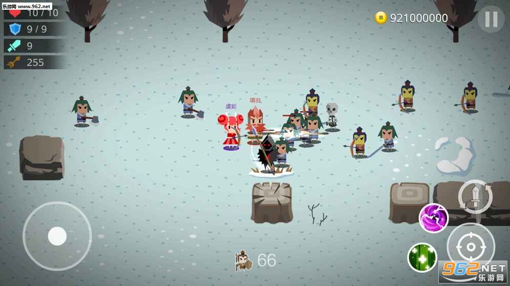 1、游戏采用了双摇杆的操控方式,左侧控制人物的移动,右侧控制人物的攻击,还可以释放自己的技能;