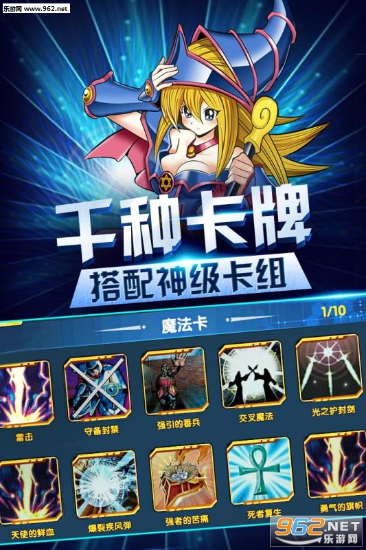 《最强决斗者》王者归来!经典重置!开启最强决斗者战斗的舞台。还原的游戏人设,热血的战斗画面,熟悉的剧情走向,再次的激烈对战,只为荣获一个称号——最强决斗者。连锁、陷阱、魔术、融合你来决定卡牌的组合,积攒人品爆发神抽,你就是下一个王者!