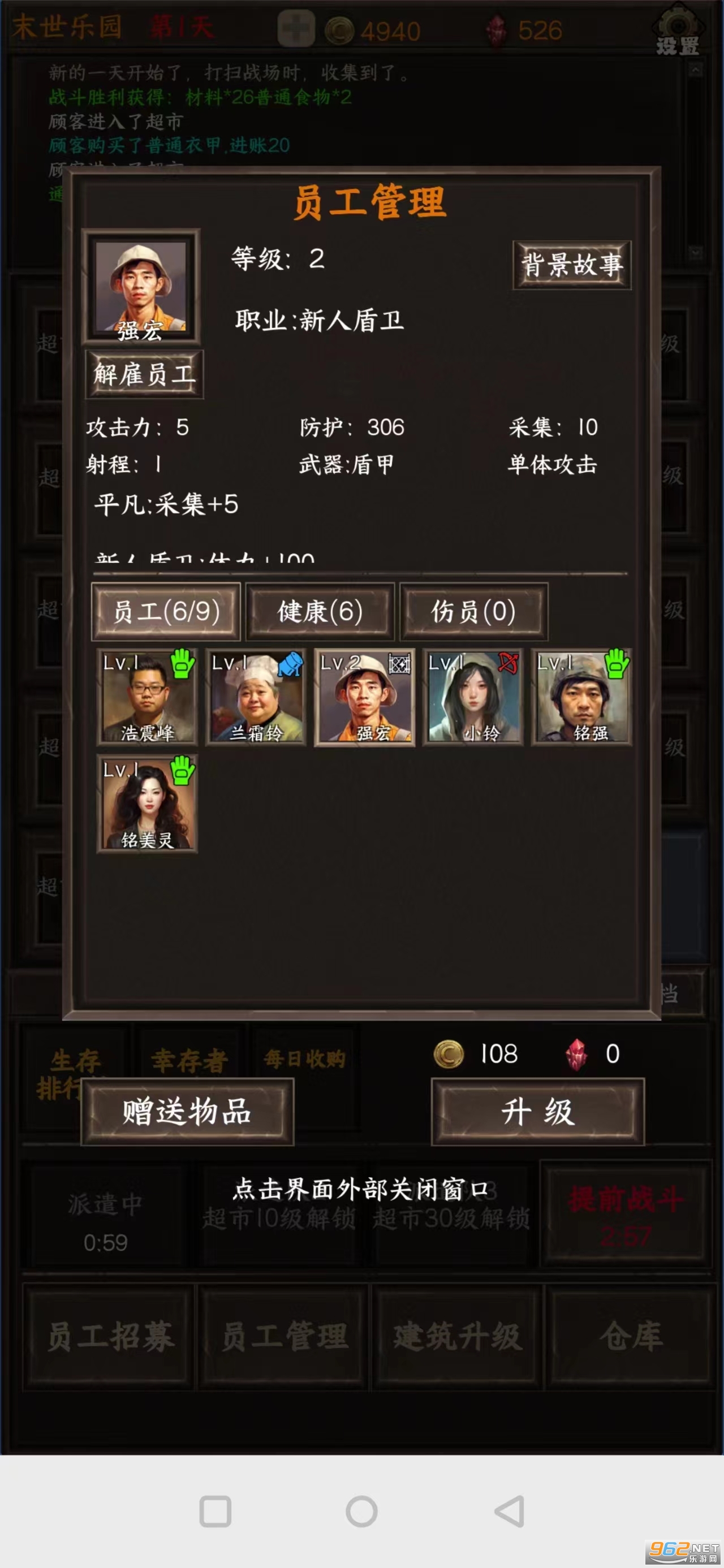 3.派遣员工收集,1分钟一次,如果战斗开启时员工没回来,无法参加战斗