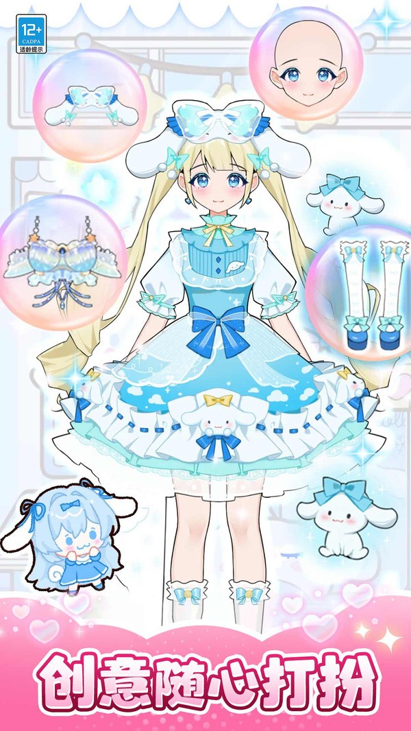 2、超多精美的二次元风格化服装,百变发型,随心搭配。