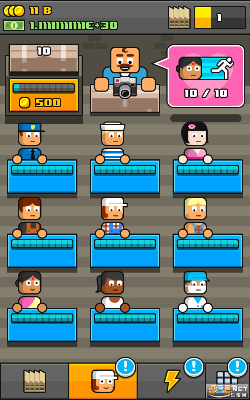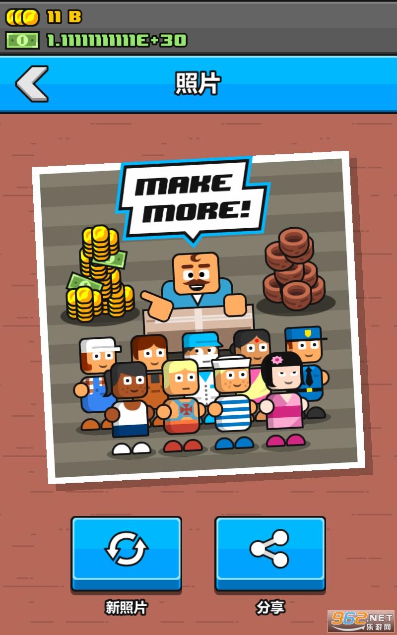 是一款放置玩法的模拟经营小游戏,玩家在游戏中要扮演一位土豪老板,雇佣工人赶制商品赚取利润,然后扩大再生产,循序渐进。玩法上,《Make More!》较常见的放置类游戏并没有太大创新。玩家依旧可以用点击屏幕的方式增进游戏进程,而系统也依旧为你提供了一沓子等待升级或者解锁的新奇内容。不过无论如何,这些元素都归结于两个字——效率。从亚洲人到非洲人再到欧洲人,甚至是外星人和机器人都会被你雇来搞生产。然而无论肤色和相貌怎么变,他们都只是你的赚钱工具,而你的方向也永远只有一个:赚更多!