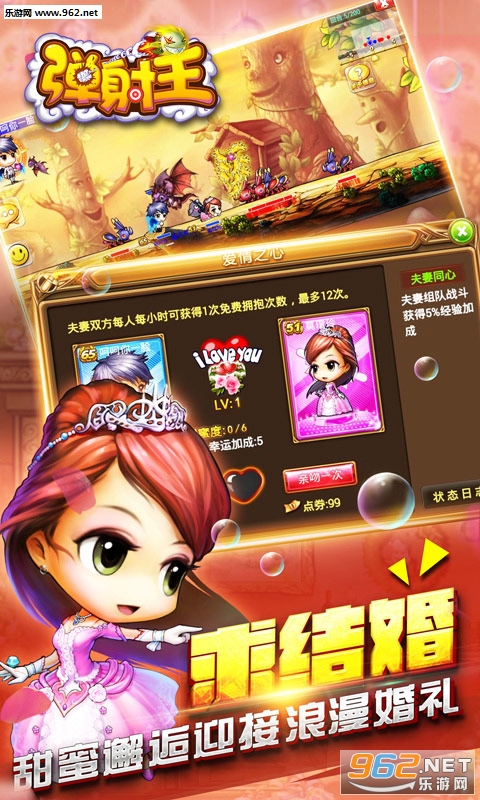 清爽的画面,可爱的人物,简单时尚的射击对战玩法一定让你爱不释手!更有浪漫结婚系统,邂逅梦中情人!