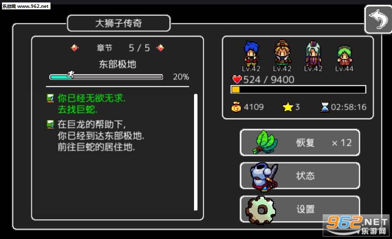 《狮子王的传说》是日本游戏商Kemco旗下的一款短篇RPG手游,作为一款RPG游戏,该作将重点放在“短时间也能通关”上,让玩家可以轻松体会RPG的游戏乐趣。该作采用经典的红白机游戏画风,你将扮演小人在旅途中冒险,并且与随时出现的怪兽进行对战。