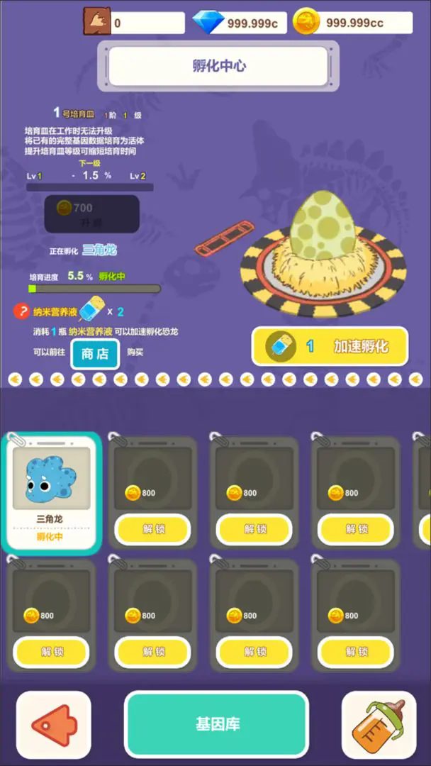 4、玩家能够通过选择不同品种的恐龙进行配对,培育出新的恐龙品种。玩家还可以通过科技树的研究解锁更多的恐龙种类和高级技能。