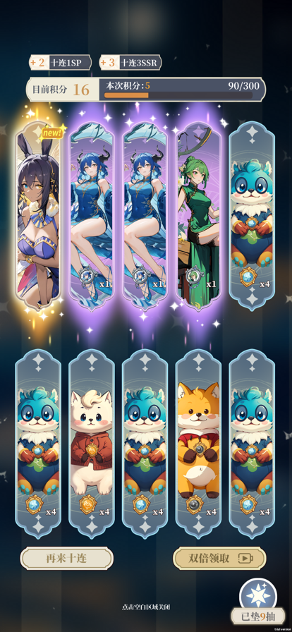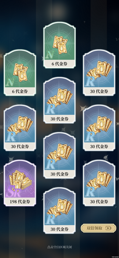 -全新制作的三百抽挑战,搭配清晰直观的抽卡记录分析,更有欧皇非酋成就奖励等你来领!这一次,不必眼馋别人白捡好几个648,只要你敢想,最最最重磅大奖--免广特权直接动动手指领回家。