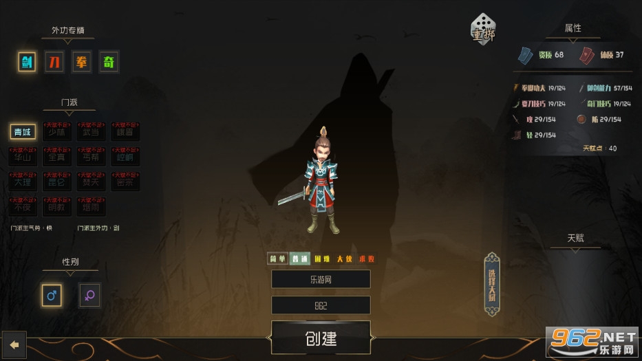 你将扮演自己创造的角色,以记名弟子的身份拜入江湖十六大门派。