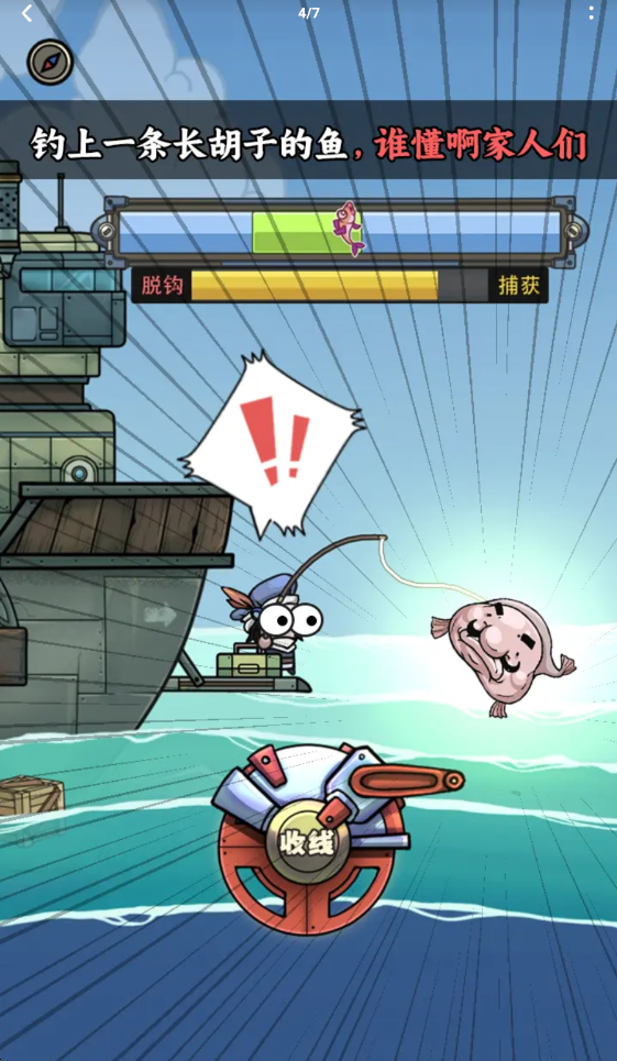 6、猎物处于绿色判定框内需点击收杆来增加进度条,当进度条满时钓鱼成功