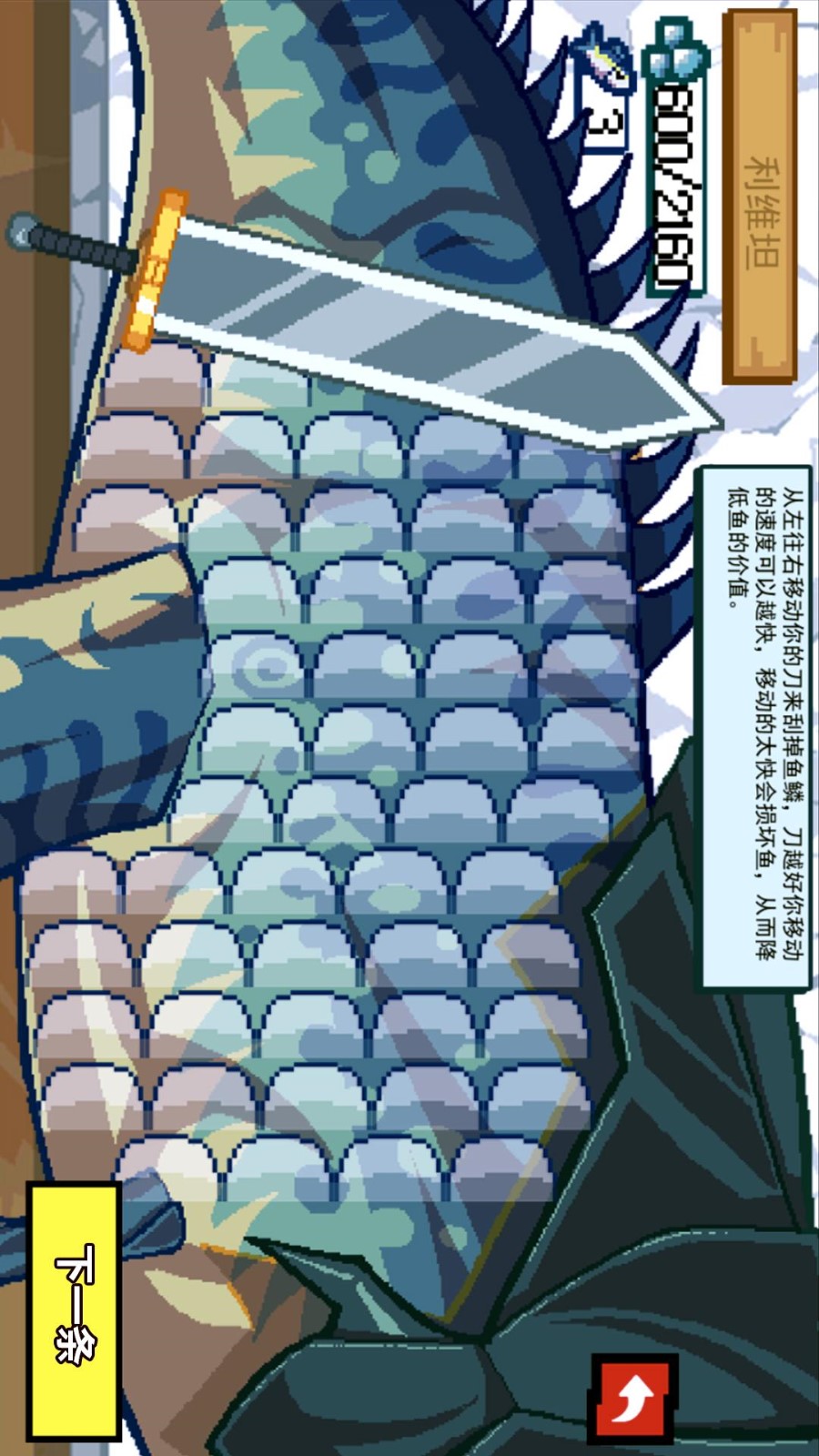 1、游戏玩法简洁明了,玩家只需刮鱼鳞即可,如不同等级的鱼钩决定了在水下持续的时间,而刮刀的等级则影响去除鱼鳞的效率,满级刮刀能够快速且精准地去鳞而不损伤鱼皮。
