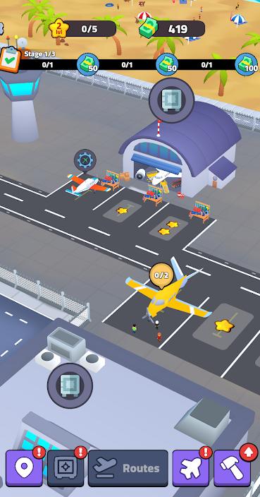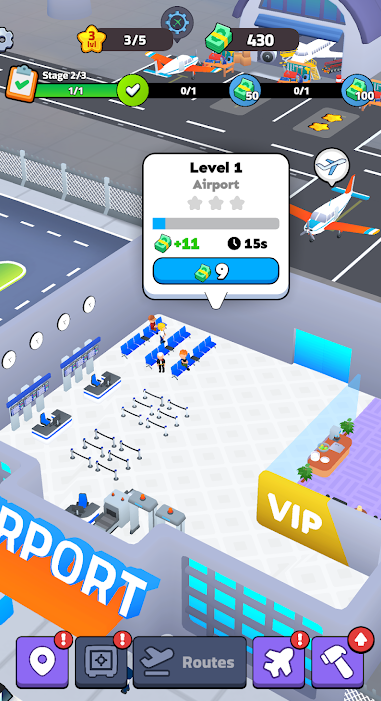 3、独特升级系统,提升设施等级,解锁新功能,助力机场发展。