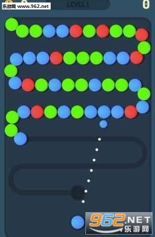 沿着虚线把球发射出去,三个相同的颜色会爆炸,在球进入孔之前将其清除。