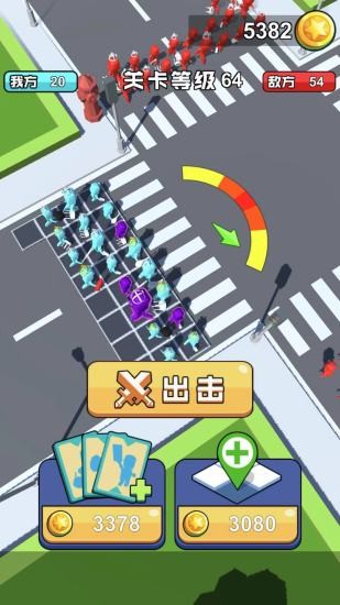 3、出击,每次都会增加一些血量或者其他收益加成,将这些小红人和BOSS消灭后即可获得巨量金币以及道具。