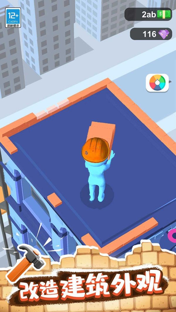 1、需要通过搬运砖块、搭建楼层来建造自己的酒店,自由的设计。