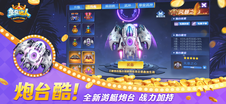 1、随时切换不同级别炮台:炮台分为普通火炮、穿透炮、速射炮和散射炮,每种炮台都有自己的特性,如威力、发射速度和炮弹数量。因此,需要根据想要捕捉的目标,随时切换炮台,以最划算的方式获取最高的收益。