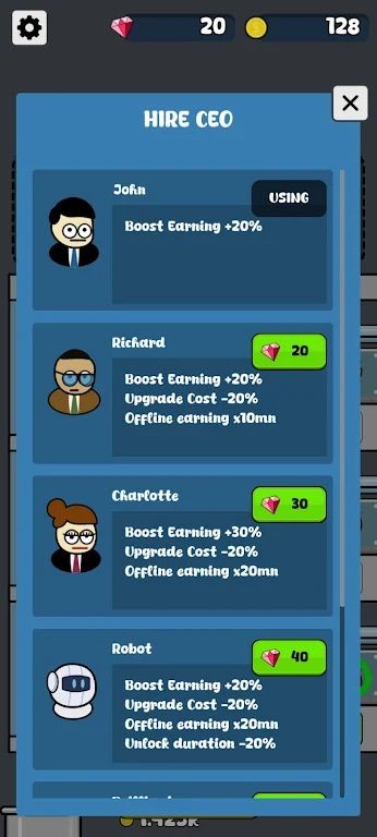 3、 每个员工都有一项独特的技能,可以帮助糖果厂生产更多的糖果。