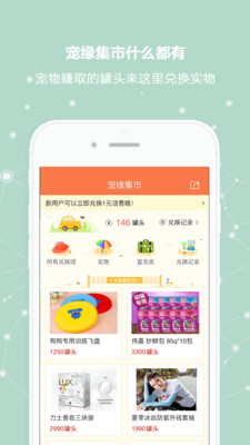 宠缘集市:持有罐头能够在宠物集市免费兑换各种实体商品。